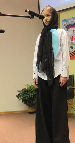 Рассказы о них никого из сидящих в зале не оставили равнодушным – у многих ком подкатывал к горлу, а на глаза наворачивались слёзы. Равно как и при исполнении ученицей 77-й школы Златой Саночкиной, покрытой траурной косынкой и облачённой в чёрное платье, молитвы матери спасти российских сыновей, обращённой к Господу Богу. А небольшой хор поисковиков 77-й школы, где главным солистом была всё та же Ольга Иванова, поднял весь зал с кресел, трепетно исполнив сталинградский гимн «Поклонимся великим тем годам».